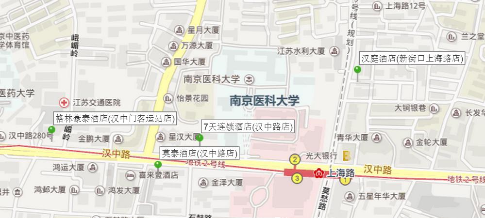 3. 格林豪泰酒店(漢中門客運站店):鼓樓區(qū)漢中路278號(漢中路與峨嵋?guī)X交匯處)
