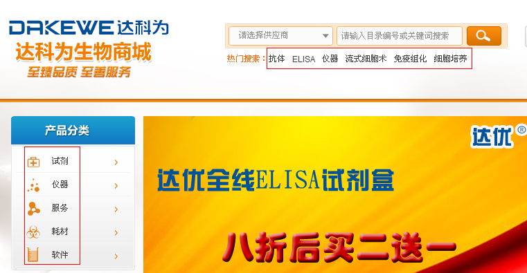 在生物城首頁(yè)可以點(diǎn)擊“產(chǎn)品目錄”,或者進(jìn)入生物商城,通過(guò)分類或者搜索來(lái)查找產(chǎn)品