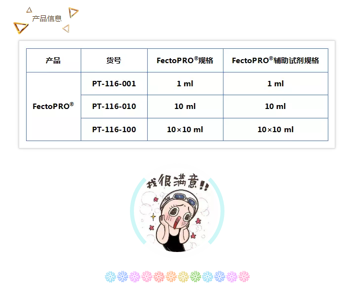 FectoPRO?保證不含動(dòng)物源成分,且限定化學(xué)成分。每個(gè)生產(chǎn)批次都經(jīng)過(guò)系統(tǒng)化的批次管理和出廠測(cè)試。采用先進(jìn)的質(zhì)控流程:蛋白質(zhì)生產(chǎn)率、細(xì)胞活性及完全無(wú)菌。