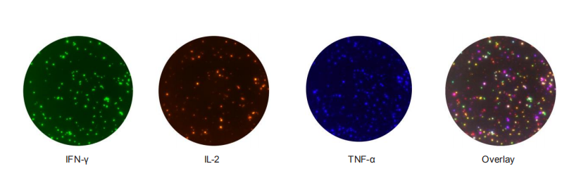 △三色FluoroSpot分析 能夠更容易的區(qū)分T細胞中不同的細胞因子
