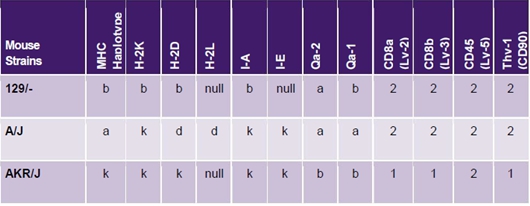 實驗室常用小鼠單倍型及同種異型抗原