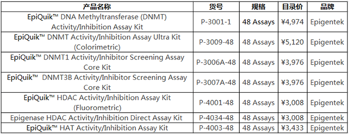 Epigentek還為您提供表觀遺傳相關的DNMT, HDAC和HAT核提取物檢測試劑盒。