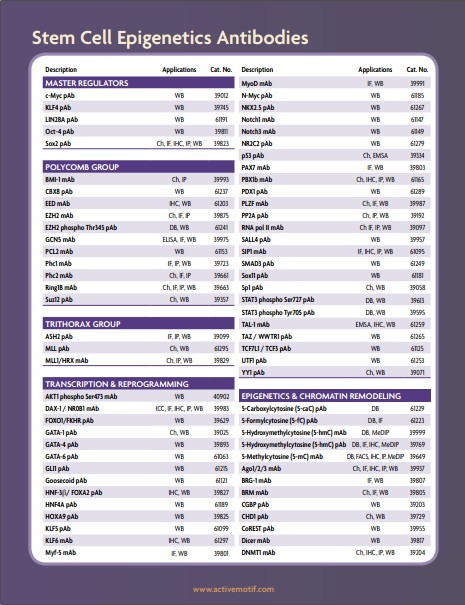 Active motif干細胞表觀遺傳學(xué)指導(dǎo)